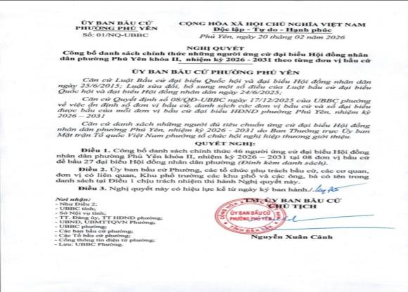 Nghị quyết phê chuẩn số lượng, danh sách phó trưởng ban hoạt động chuyên trách và ủy viên là đại biểu HĐND hoạt động kiêm nhiệm của Ban Văn hóa - Xã hội của HĐND Phường Phú Yên, nhiệm kỳ 2021 - 2026